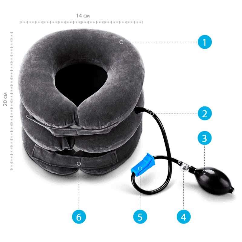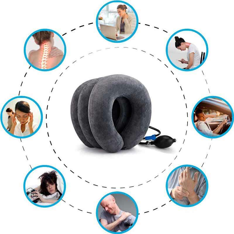 Nadaje się też dla pacjentów ze zesztywniającym zapaleniem stawów kręgosłupa. Ten kołnierz za pomocą wolnego dmuchania uwalnia ściśnięte kręgi, które są przyczyną boleści szyi oraz ramion.
